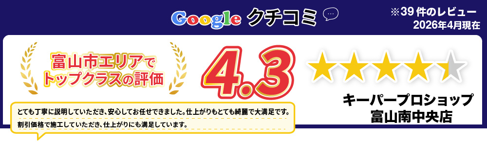 私達キーパーは、富山市・高岡市・射水市・小矢部市・氷見市・砺波市・滑川市・魚津市・立山町・上市町・舟橋村エリアのカーコーティング専門店として、日本ダントツのカーコーティングブランド、キーパーの認定店です!